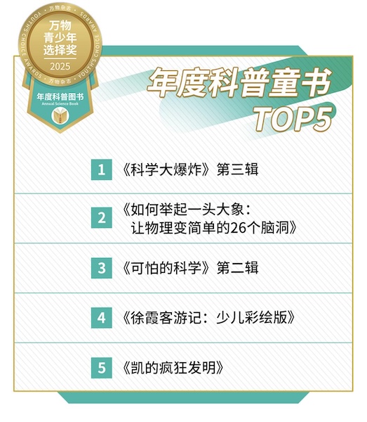近日,由国内知名的青少年科普期刊《万物》杂志主办的2025年度“青少年选择奖”评选圆满落幕。