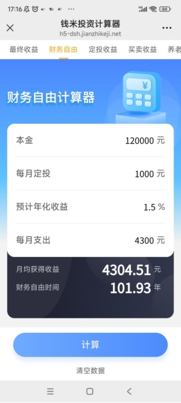 (简橙·钱米课堂投资计算器界面)