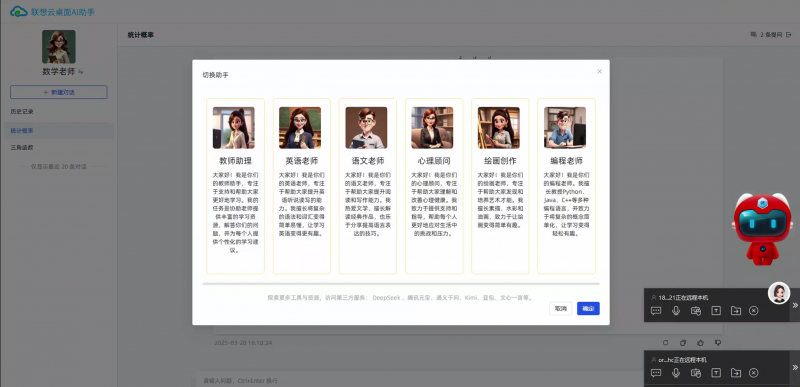 在人工智能层面,联想将DeepSeek大模型技术全链路融入“智能多擎云桌面”方案,通过云桌面AI助手和教师智能体,为师生带来全流程智慧教学体验。教师在备课、授课、批改、测评等环节均可获得AI辅助;学生则借助课前自学、课堂问答与课后复习的“三位一体”AI闭环模式更加高效地掌握知识。丰富的随堂互动功能则为师生营造了更生动、活跃的智能学习环境。
