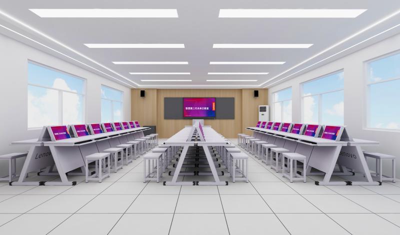 面向传统机房与教室普遍面临的品牌兼容困难、设备易损和运维复杂等难题,联想通过一体化云课桌将终端设备、桌椅结构及网络与电源系统深度整合,实现“开箱即用”式的整体交付。独特的升降、翻转等屏幕收纳设计可让课桌瞬间从计算机教室模式切换为创新教学、互动讨论等多场景,充分释放教室空间弹性。这样的设计不仅有效防止设备损坏或丢失,也显著减轻了日常运维负担,让教师能将更多精力投入到教学与学生互动中,也赋予了单一计算机教室不同的教学形态,最大化提升课堂教学效率。