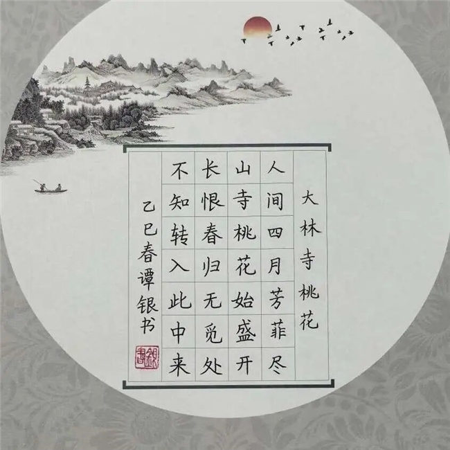 二等奖的作品同样表现出色。谭银同学书写的《大林寺桃花》,字体灵动,富有韵味,将诗词的意境通过笔墨展现得淋漓尽致。当人们欣赏这幅作品时,仿佛也能感受到诗人在桃花树下的悠然心境。