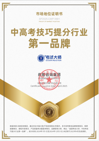 2025年5月,考试大师高品质发展大会暨中高考技巧提分行业第一品牌授牌仪式在济南隆重启幕。尚普咨询集团在活动现场为诚道考试大师颁发市场地位证明书。此次诚道考试大师荣获尚普咨询【中高考技巧提分行业第一品牌】市场地位证明,标志着诚道考试大师在中高考教育培训行业细分领域中的领导地位及市场的高度认可。