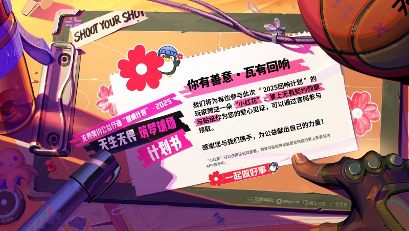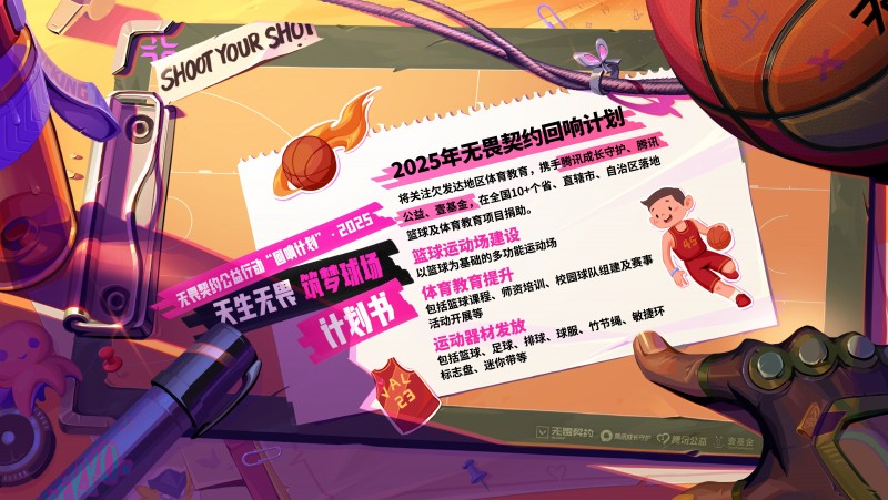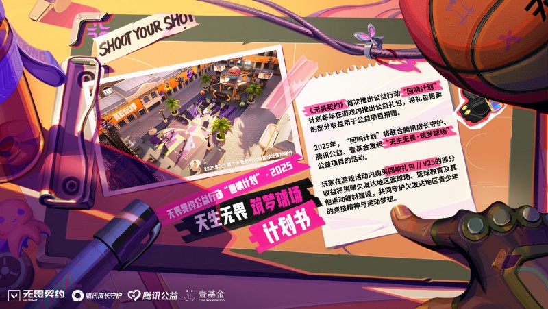2025年“回响计划”公益主题为“天生无畏 筑梦球场”,《无畏契约》将在游戏内推出“回响礼包// V25”,其部分收益将用于支持国内公益事业,捐赠不低于1000万元人民币。项目将携手腾讯成长守护、腾讯公益、壹基金三方,聚焦欠发达地区青少年体育教育发展,通过篮球场建设、趣味性体育教育以及运动器材捐赠,帮助青少年获得更好的运动环境,助力乡村体育教育发展以及乡村儿童的篮球梦想。
