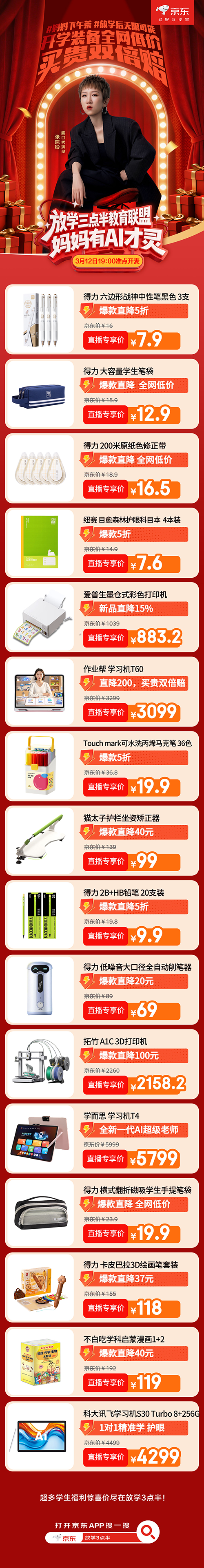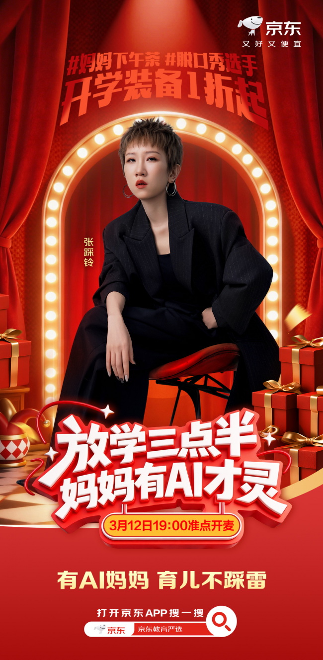 3月12日晚19点,打开京东APP搜索“京东教育严选”,锁定“放学3点半,妈妈有AI才灵”直播,一起见证张踩铃如何用AI装备“踩铃”下课,把育儿压力踩在脚下。